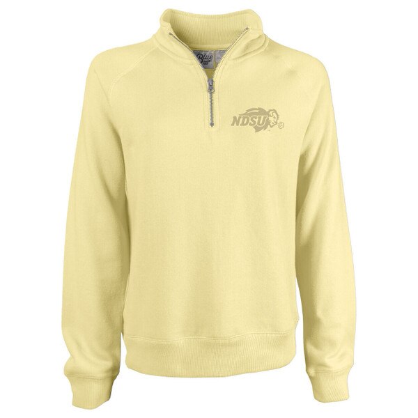1/4 Zip Crew - Ladies Yellow By Blue 84 Pinit $59.99 SKU: LADIES-CREW-BLUE-84-QUARTER-ZIP-EMBROIDERED-YELLOW Select Size : Small Medium Large XX-Large Quantity -+ Add to Cart Details 60% cotton, 40% polyester8 oz.Quarter zip crew neckline2x1 rib cuffs and waistbandDecorative cover stitching throughoutRelaxed fitEmbroidered tonal ND... Details Back Details60% cotton, 40% polyester8 oz.Quarter zip crew neckline2x1 rib cuffs and waistbandDecorative cover stitching throughoutRelaxed fitEmbroidered tonal NDSU Bison logo on left chestAvailable in yellow