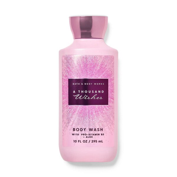 Bath & Body Works Body Wash A Thousand Wishes Pinit $16.95 SKU: 66755928602 Quantity -+ Add to Cart Details What it smells like: a sweet, heart-warming celebration.Fragrance notes: pink prosecco, sparkling quince, crystal peonies, gilded amber and amaretto c... Details Back DetailsWhat it smells like: a sweet, heart-warming celebration.Fragrance notes: pink prosecco, sparkling quince, crystal peonies, gilded amber and amaretto crème.
