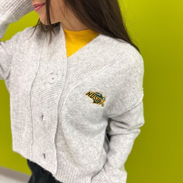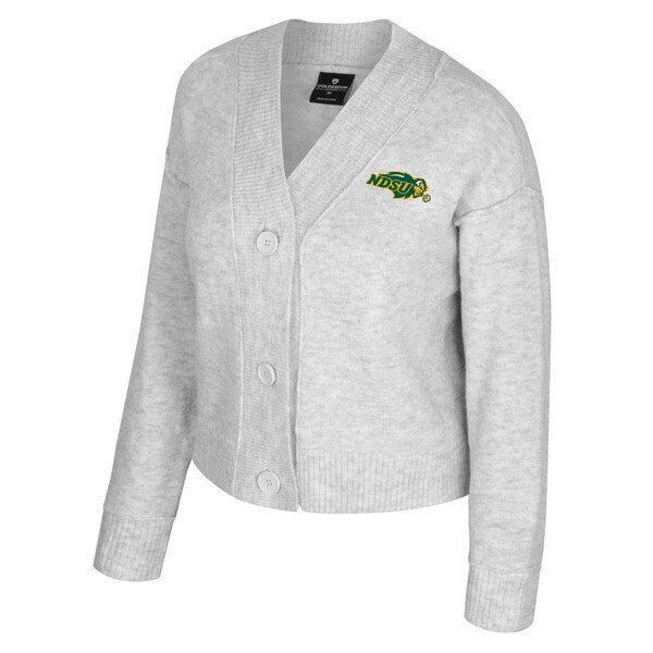 Cardigan - Ladies Emily Sweater By Colosseum New ItemNEW Pinit $80.00 SKU: LADIES-CARDIGAN-COLOSSEUM-EMILY-SWEATER-CROP-LC-EMB-PRIMARY-HEATHER-GREY Select Size : Small Medium Large X-large Quantity -+ Add to Cart Details 97% polyester, 3% spandexPlush sweater materialTonal, front 3 buttonsRib placket, cuffs & bottom bandSlightly cropped in lengthEmbroidered NDSU Bison ... Details Back Details97% polyester, 3% spandexPlush sweater materialTonal, front 3 buttonsRib placket, cuffs & bottom bandSlightly cropped in lengthEmbroidered NDSU Bison logo on left chestAvailable in light heather grey*Model wearing size small