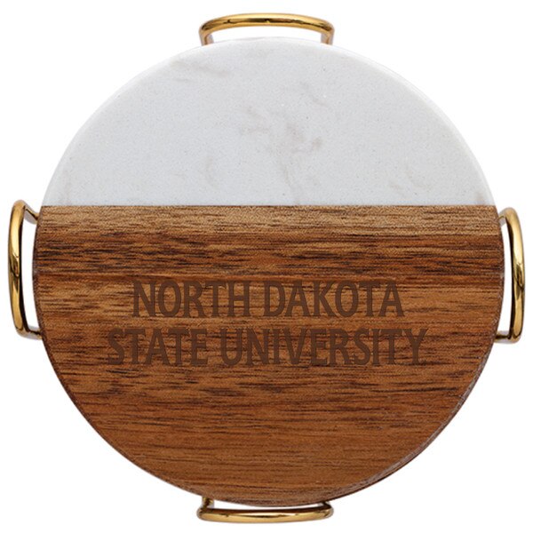 Coaster - 4-Pack NDSU Wood & Marble New ItemNEW Pinit $29.99 SKU: 05012240064 Quantity -+ Add to Cart Details Includes 4 coasters and a gold metal storage holderEach coaster is a combo of wood & stoneDebossed North Dakota State University text on the wood of e... Details Back DetailsIncludes 4 coasters and a gold metal storage holderEach coaster is a combo of wood & stoneDebossed North Dakota State University text on the wood of each coaster