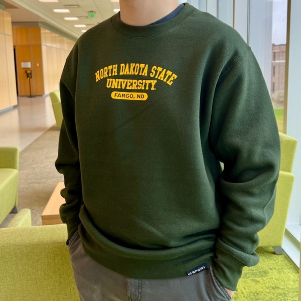 Crew Sweatshirt - By CI Sport Pinit $44.99 SKU: CREW-CI-SPORT-BISON-HAVANA-GREEN Select Size : Medium Large Quantity -+ Add to Cart Details 80% cotton, 20% polyesterRib knit cuffs and bottom bandScreen printed “North Dakota State University Fargo, ND” print on frontAvailable in forest gree... Details Back Details80% cotton, 20% polyesterRib knit cuffs and bottom bandScreen printed “North Dakota State University Fargo, ND” print on frontAvailable in forest green