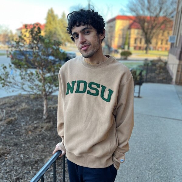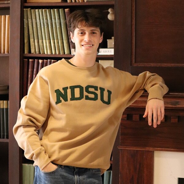 Crew Sweatshirt - Camel Brown Cross Grain By Blue 84 New ItemNEW Pinit $66.99 SKU: CREW-BLUE-84-CROSS-GRAIN-GREEN-APPLIQUE-NDSU-CAMEL-BROWN Select Size : Small Medium Large X-large XX-Large Quantity -+ Add to Cart Details 55% cotton, 45% polyesterHeavyweightRib detailing on neckline, cuffs, sides & hemFelt applique NDSU on front in forest greenAvailable in camel brown*M... Details Back Details55% cotton, 45% polyesterHeavyweightRib detailing on neckline, cuffs, sides & hemFelt applique NDSU on front in forest greenAvailable in camel brown*Model wearing size Medium