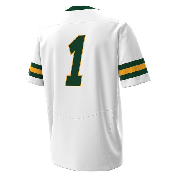 - Featuring an NDSU “1” on front and number “1” on back with green and gold stripes on sleeves