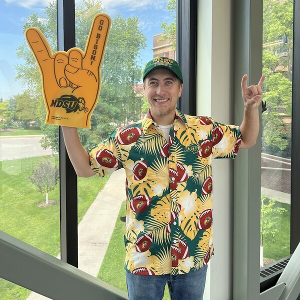 Hawaiian Shirt - By ProSphere New ItemNEW Pinit $64.99 SKU: HAWAIIAN-SHIRT-PROSHERE-FOOTBALLS-GOLD-GREEN Select Size : Medium Large X-large XX-Large XXX-Large Quantity -+ Add to Cart Details 100% polyesterSuper lightweight materialButton-down All over NDSU Hawaiian football print Details Back Details100% polyesterSuper lightweight materialButton-down All over NDSU Hawaiian football print