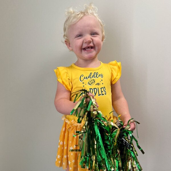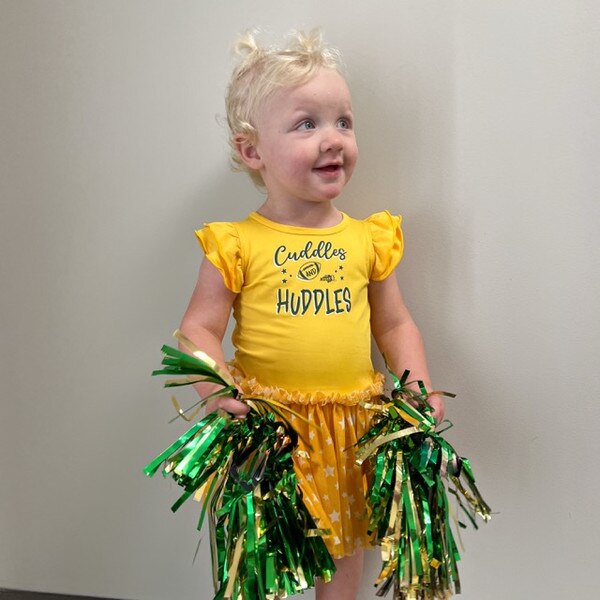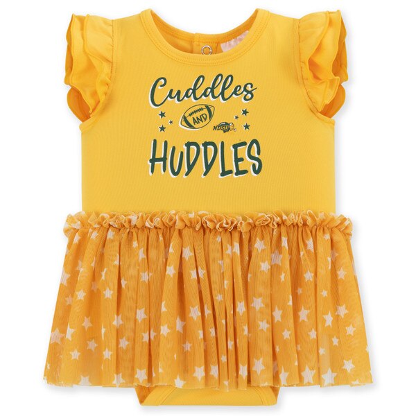 Onesie Dress - Infant Girls Cuddles And Huddles By Zoozatz New ItemNEW Pinit $46.99 SKU: INFANT-ONESIE-ZOOZATZ-CUDDLES-AND-HUDDLES-PRIMARY-LOGO-TUTU-GOLD Select Size : 0-3 MONTHS 3-6 MONTHS 6-12 MONTHS 12-18 MONTHS Quantity -+ Add to Cart Details Body: 93% polyester, 7% spandexSkirt: 94% polyester, 6% spandexRuffle sleevesTutu skirt with white starsBottom 3 snap closureScreen printed Cuddles an... Details Back DetailsBody: 93% polyester, 7% spandexSkirt: 94% polyester, 6% spandexRuffle sleevesTutu skirt with white starsBottom 3 snap closureScreen printed Cuddles and Huddles design on frontAvailable in gold*Model wearing size 12-18mo
