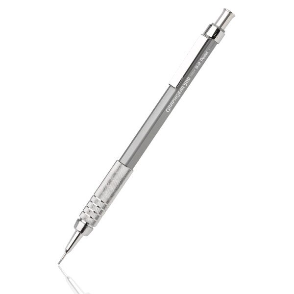 Draw clear crisp lines with this Pentel Graph Gear 500 automatic drafting pencil. The slim beveled barrel and metallic mesh grip promote outstanding control, while the Pentel Super Hi-Polymer HB lead doesn't break easily and creates dark legible lines.
