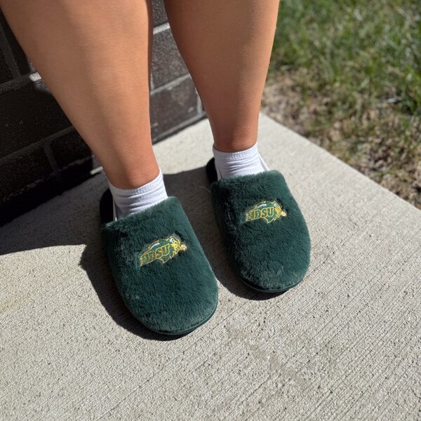 Slippers - Ladies NDSU Fuzzy Green By Zoozatz New ItemNEW Pinit $25.99 SKU: SLIPPERS-ZOOZATZ-EMB-PRIMARY-LOGO-FOREST-GREEN Select Size : 5/6 7/8 9/10 Quantity -+ Add to Cart Details Slip-on fuzzy green slippersUS Women's Sizing100% synthetic materials Embroidered NDSU Bison logo on each slipperAvailable in forest green Details Back DetailsSlip-on fuzzy green slippersUS Women's Sizing100% synthetic materials Embroidered NDSU Bison logo on each slipperAvailable in forest green