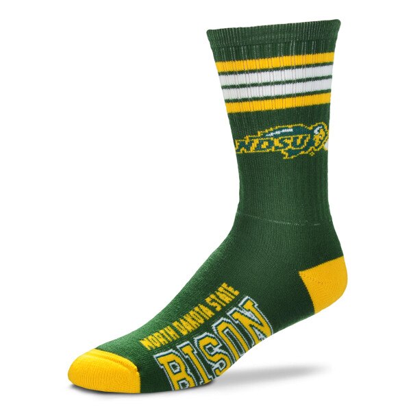 Socks - NDSU 4-Stripe Deuce New ItemNEW Pinit $11.99 SKU: SOCK-FOR-BARE-FEET-4-STRIPE-DEUCE-NDS Select Size : Large Out of Stock Quantity -+ Add to Cart Details 83% acrylic, 14% polyester, 2% rubber, 1% spandexCrew heightFeatures NDSU Primary logo and North Dakota State Bison printAvailable in green/gold/white... Details Back Details83% acrylic, 14% polyester, 2% rubber, 1% spandexCrew heightFeatures NDSU Primary logo and North Dakota State Bison printAvailable in green/gold/whiteSizing:Medium = Women's 6-11, Men's 5-10Large = Men's 10-13