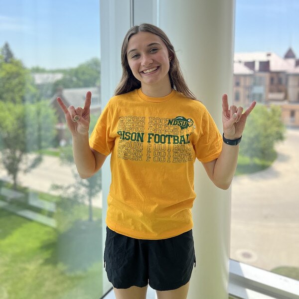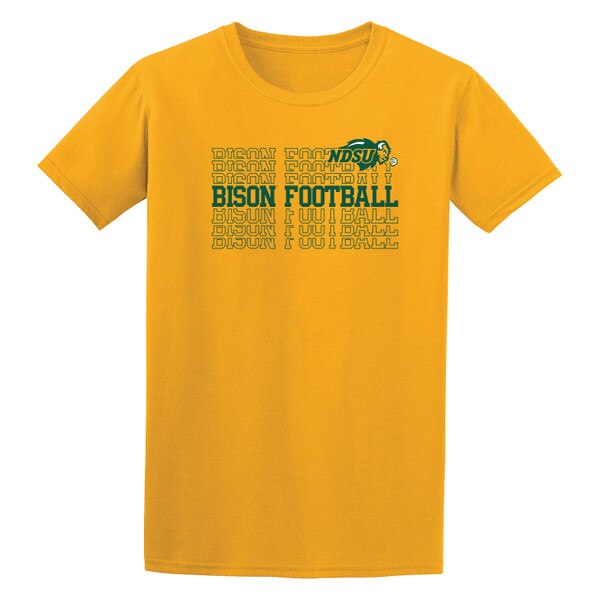 T-Shirt - BISON FOOTBALL By College House Pinit $22.99 SKU: TEE-COLLEGE-HOUSE-REPEATING-BISON-FOOTBALL-PRIMARY-GOLD Select Size : Small Medium Large XX-Large XXX-Large Quantity -+ Add to Cart Details 100% cottonScreen printed repeating BISON FOOTBALL text with NDSU Bison logoAvailable in gold Details Back Details100% cottonScreen printed repeating BISON FOOTBALL text with NDSU Bison logoAvailable in gold