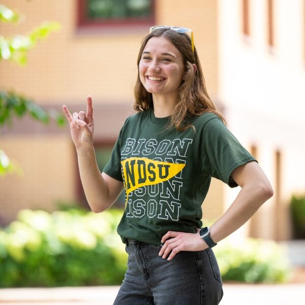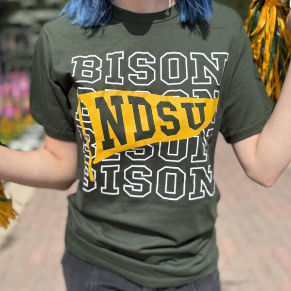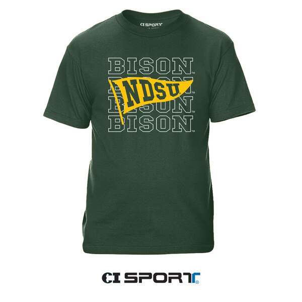 T-Shirt - By CI Sport Pinit $18.99 SKU: TEE-CI-SPORT-SPIRIT-BISON-REPEAT-GOLD-WHITE-PENNANT-NDSU-FOREST-GREEN Select Size : Small Medium Large X-large XX-Large XXX-Large Quantity -+ Add to Cart Details 100% cottonScreen printed NDSU pennant design on frontAvailable in forest green*Models wearing size Small Details Back Details100% cottonScreen printed NDSU pennant design on frontAvailable in forest green*Models wearing size Small