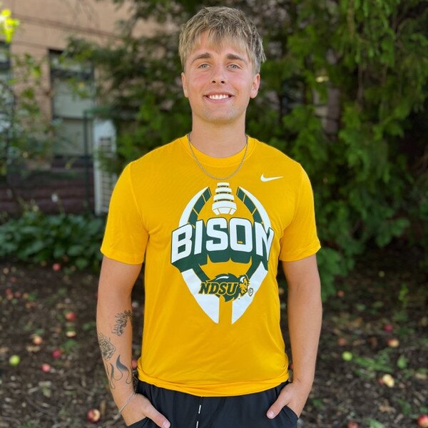 - Screen printed vertical football design with BISON text and NDSU Bison logo