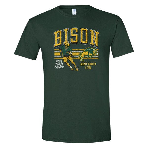 T-Shirt - Move Those Chains By College House Sale ItemSALE Pinit $12.98 SKU: TEE-COLLEGE-HOUSE-BISON-FB-PLAYER-MOVE-THOSE-CHAINS-FOREST-GREEN Select Size : Small Medium Out of Stock Quantity -+ Add to Cart Details Original Price - $22.99100% cottonScreen printed BISON text with football player graphic and NDSU Full Body Bison logoAvailable in forest green Details Back DetailsOriginal Price - $22.99100% cottonScreen printed BISON text with football player graphic and NDSU Full Body Bison logoAvailable in forest green