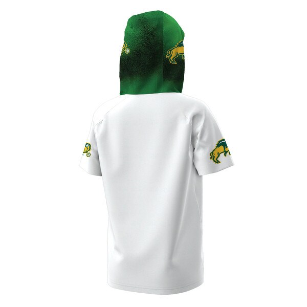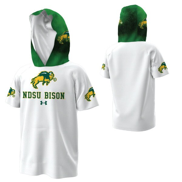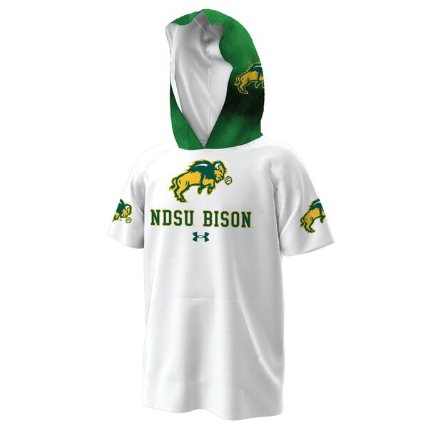 - Sublimated NDSU BISON text on front with Full Body Bison logo on chest, left and right sleeves, and left and right sides of hood. Sublimated Under Armour logo below text